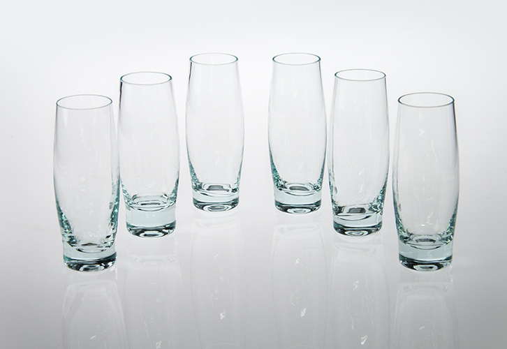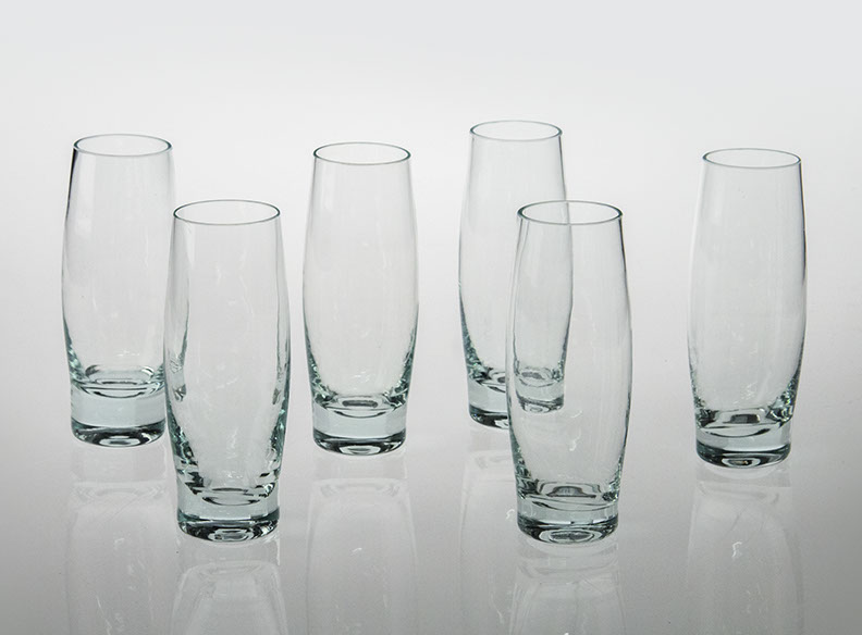 A set of 16 mouth-blown drinking glasses that are also elegant enough to use as wine glasses.