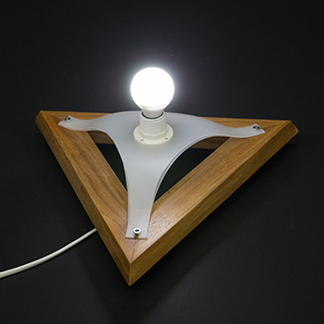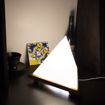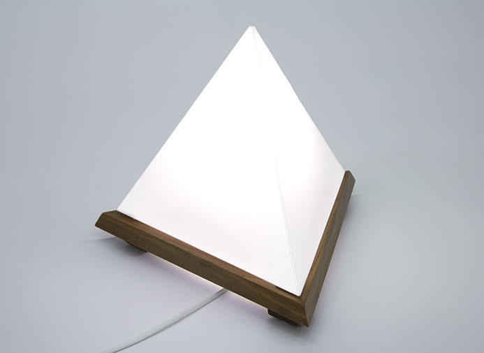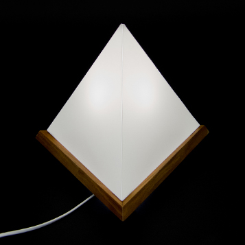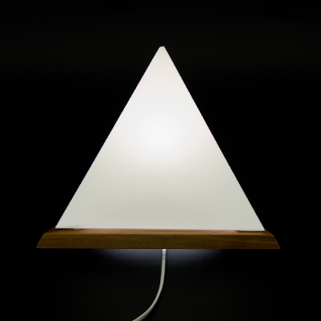 The Tetralight-lamp has the shape of a three-sided pyramid, a tetrahedron. It is the most simple geometric solid yet it really stands out, because our environment tends to be rectangular.